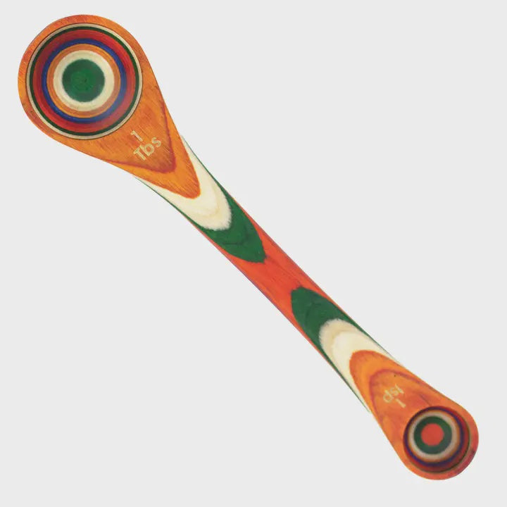 Finely crafted from layered birch and vibrantly colored to make a splash. Each utensil is safe for use on non-stick and sure to make an impression! Includes both Tablespoon and Teaspoon measurements.