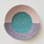 This sisal, woven basket is approximately 8" in diameter and woven by artisans in Gitarama, Rwanda. The women extract the sisal fibers from agave plants, then hand-dye and weave them into these beautiful works of art. The sisal is woven around sweetgrass, a fragrant grass with a subtle sweetness. Each sisal Rwandan basket comes with a string attached to the back so that you can hang it on the wall. In addition to making a beautiful table display, these baskets can also be hung as art. You can combine them with other baskets or works of art to make a feature wall collage.