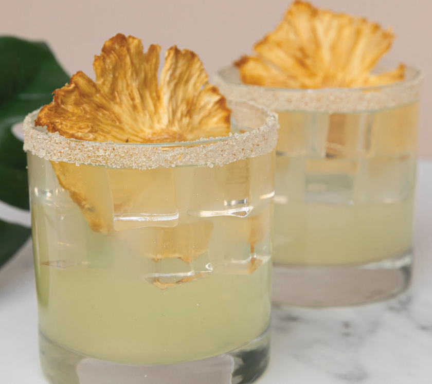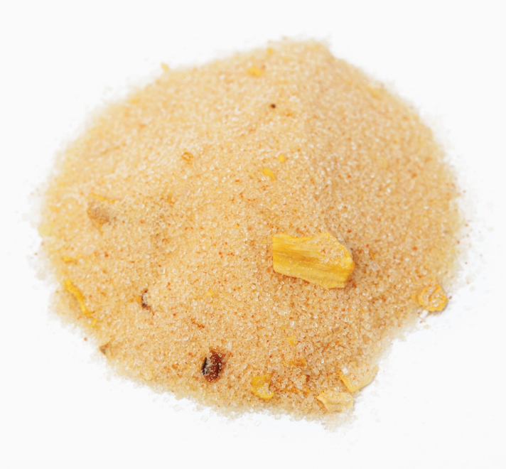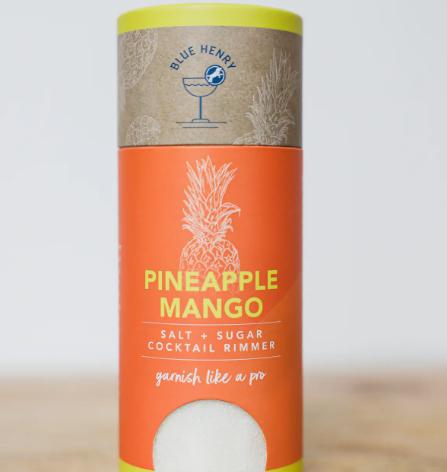 Pure cane sugar elevated in flavor by a touch of salt and the island flavors of pineapple and mango. Small flakes of real pineapple take you back to the feeling of a vacation on the beach. These flavors pair well with Daiquiris, Margaritas, Piña-Coladas and other tropical cocktails.